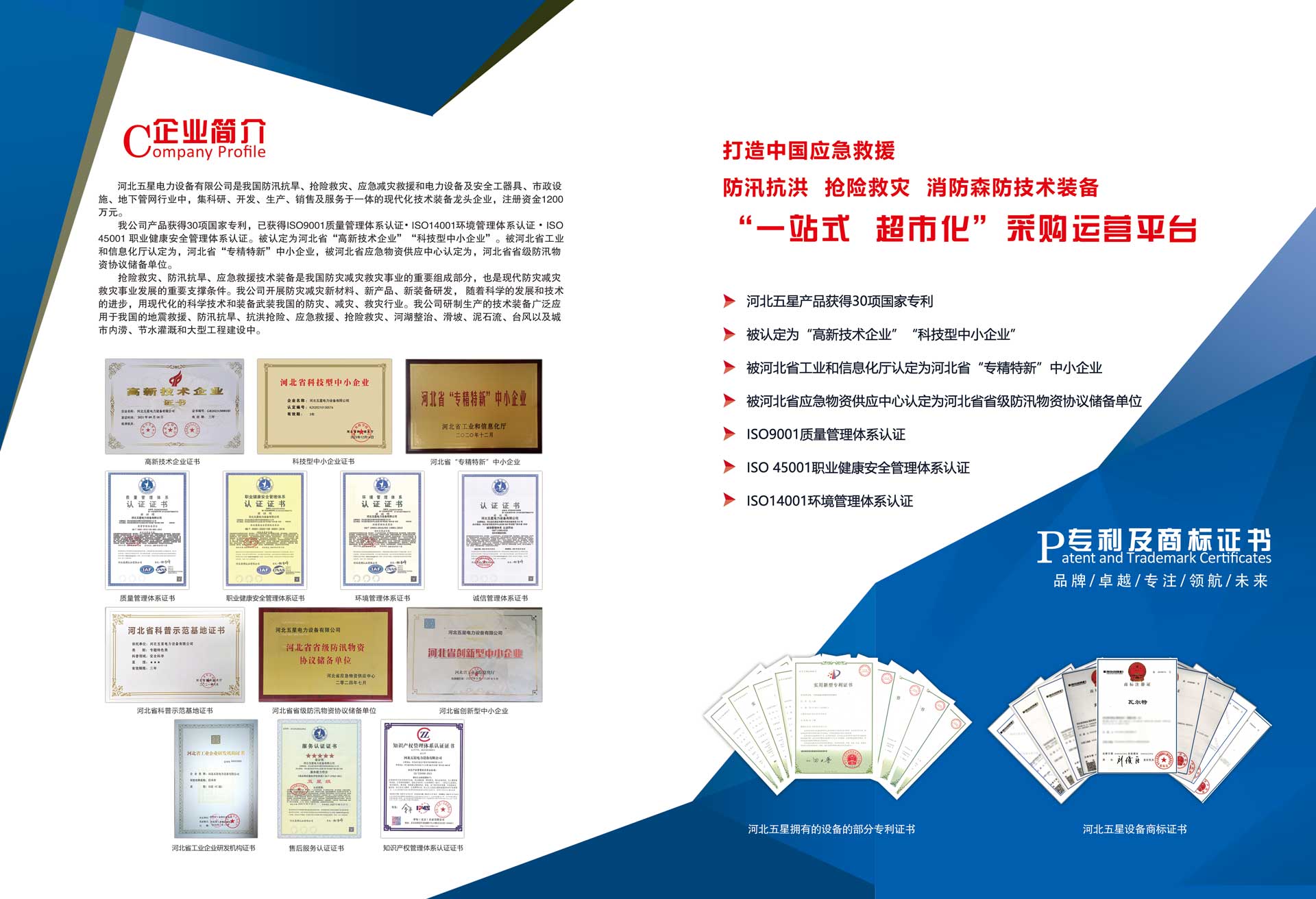 河北五星電力設(shè)備有限公司是我國(guó)防汛抗旱、搶險(xiǎn)救災(zāi)、應(yīng)急減災(zāi)救援和電力設(shè)備及安全工器具、市政設(shè)施、地下管網(wǎng)行業(yè)中,集科研、開發(fā)、生產(chǎn)、銷售及服務(wù)于一體的現(xiàn)代化技術(shù)裝備高新技術(shù)企業(yè),注冊(cè)資金1200萬(wàn)元。  我公司產(chǎn)品已獲得ISO9001質(zhì)量管理體系...